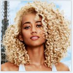 Mid-length waves with curtain bangs add a soft and romantic touch to cool-toned blonde hair colors. To preserve the luminous platinum blonde and textured waves, integrate a hydration mask into your routine and use a curl-defining cream to enhance the natural movement.
